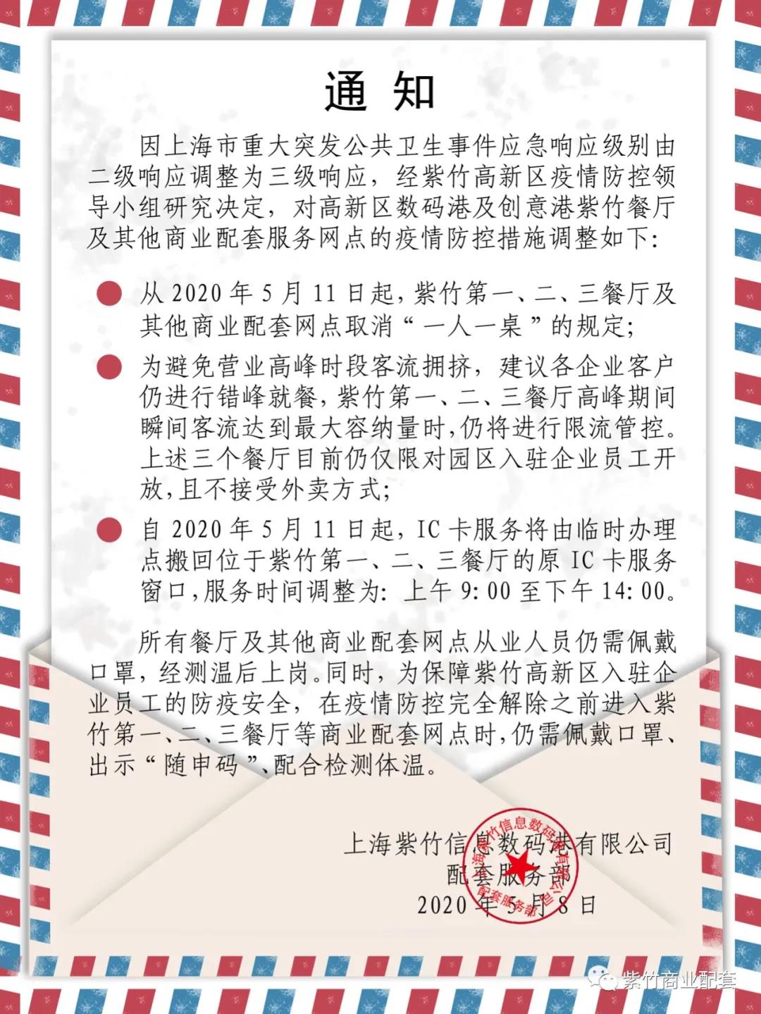 關(guān)于取消紫竹餐廳及其他配套網(wǎng)點“一人一桌”的通知