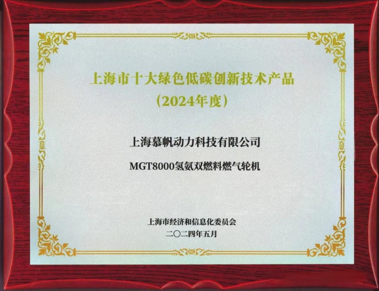 慕帆動力榮獲上海市2024年度十大綠色低碳創(chuàng)新技術(shù)產(chǎn)品