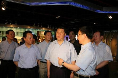 2007年6月19日上午,中共上海市委書記習(xí)近平在市委副書記、市長韓正,市委常委徐麟,常務(wù)副市長馮國勤,閔行區(qū)區(qū)委書記孫潮,區(qū)長陳靖等人的陪同下視察了上海紫竹科學(xué)園區(qū)的科技成果展示中心和濱江大道