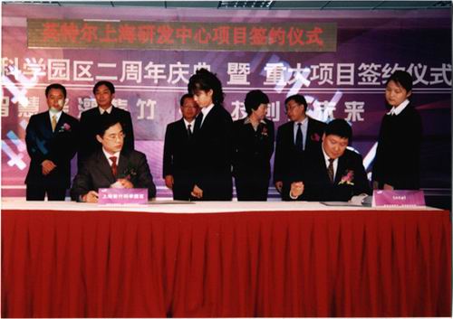 2004年6月26日,英特爾(上海)研發(fā)中心正式簽約入駐上海紫竹科學(xué)園區(qū),英特爾中國區(qū)總裁Mr.WeeThengTam與上海紫竹科學(xué)園區(qū)執(zhí)行副總經(jīng)理夏光先生在入駐協(xié)議上簽字
