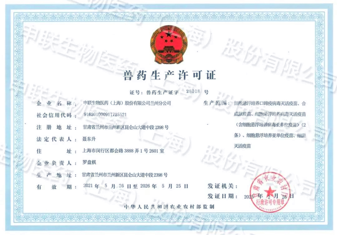 申聯(lián)生物醫(yī)藥(上海)股份有限公司蘭州分公司順利通過獸藥GMP認(rèn)證——全面布局動(dòng)物滅活疫苗產(chǎn)線