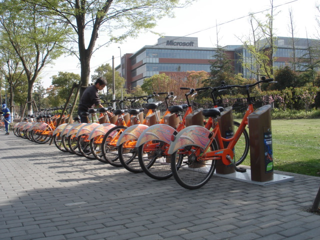 目前,閔行區(qū)免費租賃公共自行車在園區(qū)正式開始投入使用