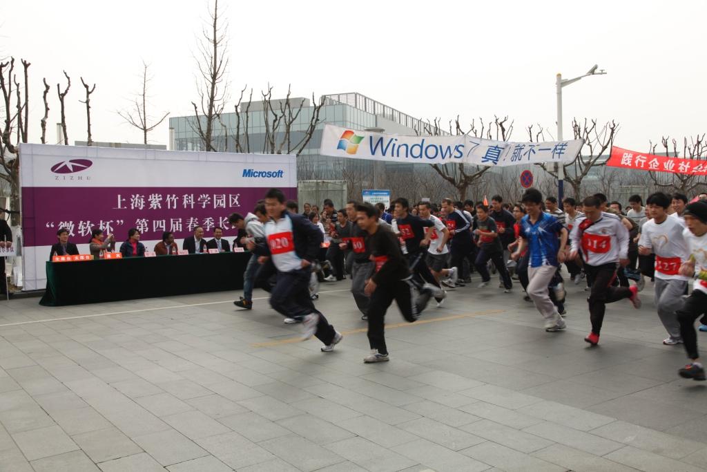 為豐富園區(qū)內(nèi)企業(yè)員工的文化生活、加強(qiáng)企業(yè)間友好交流與協(xié)作,提升園區(qū)的凝聚力和社會(huì)影響力,2011年3月4日下午1:30,由紫竹商會(huì)主辦、微軟(中國(guó))有限公司贊助協(xié)辦的上海紫竹科學(xué)園區(qū)“微軟杯”第四屆春季長(zhǎng)跑聯(lián)誼賽在園區(qū)拉開帷幕