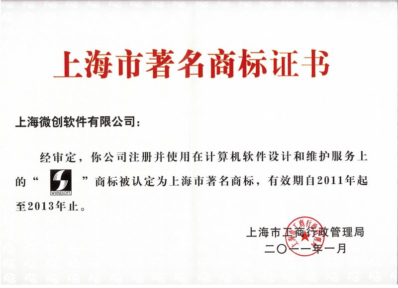 微創(chuàng)軟件被認(rèn)定為“上海市著名商標(biāo)”