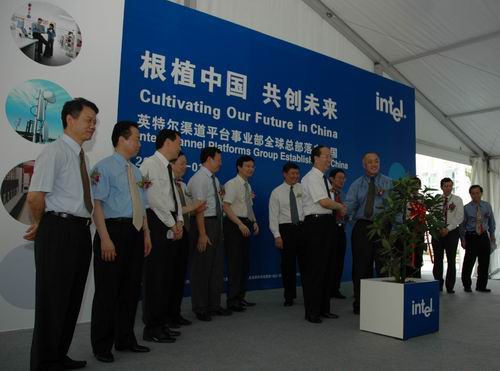 2005年8月1日下午,英特爾渠道平臺事業(yè)部全球總部落戶上海儀式在上海紫竹科學園區(qū)隆重舉行,上海市人民政府副市長周禹鵬、英特爾公司副總裁兼渠道平臺事業(yè)部總經(jīng)理蕭慕廉、上海外資委主任周波、上海市外資委副主任劉錦屏、市信息委秘書長周衛(wèi)東、閔行區(qū)人民政府區(qū)長陳靖、副區(qū)長張文越、紫竹科學園區(qū)董事長、總經(jīng)理沈雯等出席儀式。
