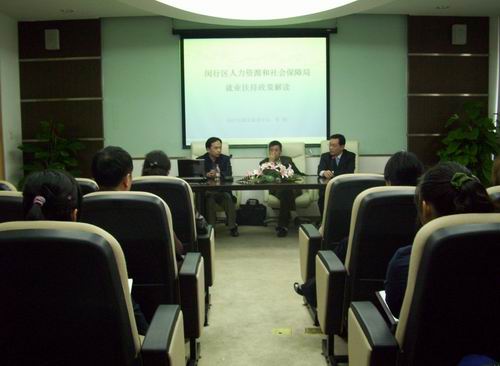 李主任和周科長分別介紹了目前閔行區(qū)的就業(yè)形勢,詳細(xì)闡述了市、區(qū)兩級政府為應(yīng)對當(dāng)前金融危機(jī)而出臺的一系列勞動(dòng)人事新政,包括困難企業(yè)執(zhí)行勞動(dòng)人事法律法規(guī)過程中的調(diào)整措施,企業(yè)招聘錄用和培訓(xùn)過程中的各類補(bǔ)貼條件、補(bǔ)貼標(biāo)準(zhǔn);闡述了為緩解大學(xué)生就業(yè)困難而專門推出的就業(yè)援助、職業(yè)培訓(xùn)和市場監(jiān)控三個(gè)“特別計(jì)劃”,重點(diǎn)對大學(xué)生見習(xí)基地的申請程序、政府補(bǔ)貼標(biāo)準(zhǔn)、見習(xí)生的管理等逐一進(jìn)行了講解。并現(xiàn)場解答了企業(yè)代表的提問。