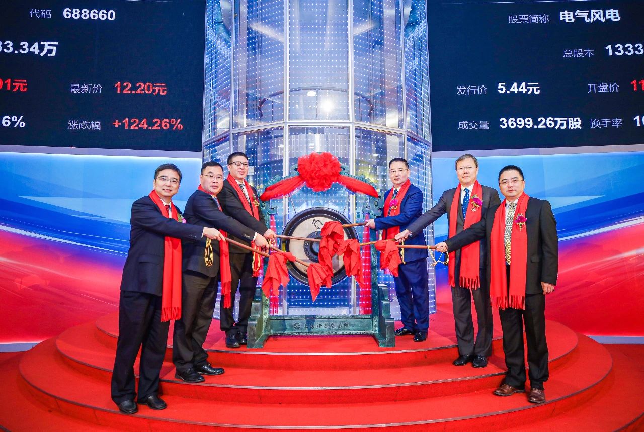 2021年5月19日上午,隨著一聲清脆的鑼鳴,紫竹高新區(qū)入駐企業(yè)上海電氣風(fēng)電集團(tuán)股份有限公司(股票代碼688660)正式登陸科創(chuàng)板上市。上海電氣黨委書記、董事長(zhǎng)鄭建華,黨委副書記、總裁黃甌;電氣風(fēng)電黨委書記、董事長(zhǎng)金孝龍,電氣風(fēng)電總裁繆駿,電氣風(fēng)電財(cái)務(wù)總監(jiān)、董事會(huì)秘書黃鋒鋒;上海市閔行區(qū)委副書記、區(qū)長(zhǎng)陳宇劍,閔行區(qū)委常委、副區(qū)長(zhǎng)管小軍;紫竹高新區(qū)常務(wù)副總經(jīng)理夏光,招商總監(jiān)任曼等領(lǐng)導(dǎo)和嘉賓共同見證了這一激動(dòng)人心的時(shí)刻。這是繼至純潔凈、柏楚電子、申聯(lián)生物等企業(yè)上市后,紫竹高新區(qū)的第九家上市企業(yè),也是高新區(qū)第三家科創(chuàng)板上市企業(yè)。