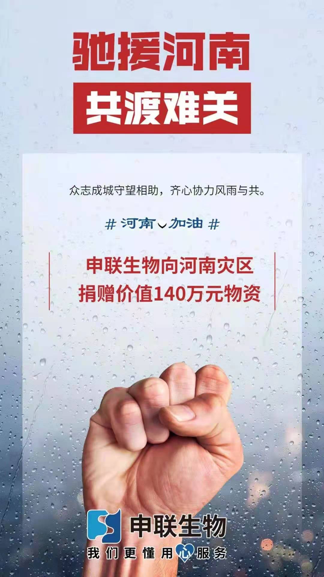 眾志成城守望相助,齊心協(xié)力風雨與共。申聯(lián)生物將持續(xù)關注河南汛情,全力助力政府與社會各界抗險救災。河南加油!我們同在!