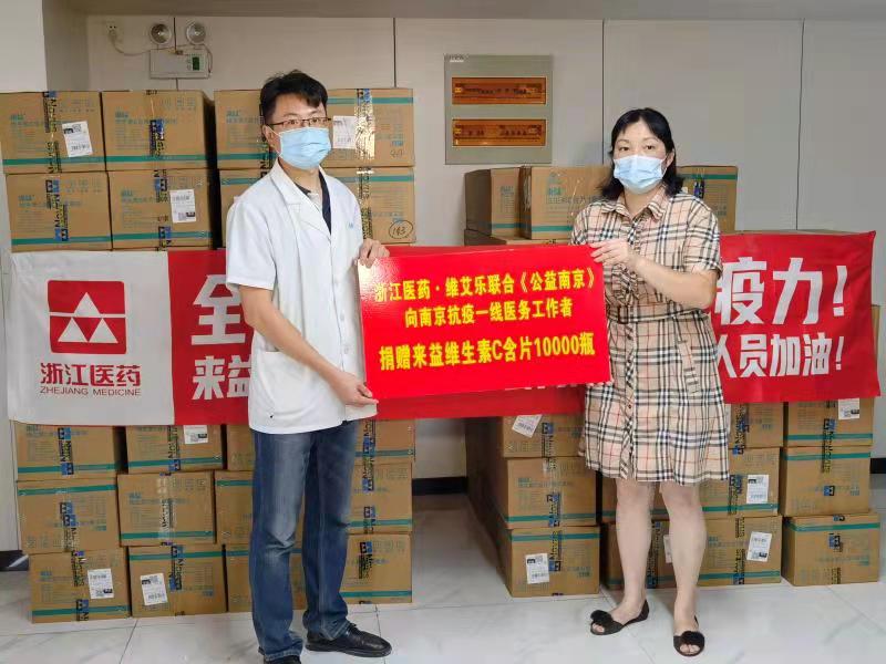 浙江醫(yī)藥?維艾樂第一時間聯(lián)系南京市紅十字會,捐贈10000瓶來益維生素C含片,馳援一線醫(yī)護和防疫工作者。同時通過南京愛德基金會,捐贈8000瓶來益維生素C含片,為一線防疫工作者及志愿者增強免疫力,本次捐贈的總價值超過10萬元。