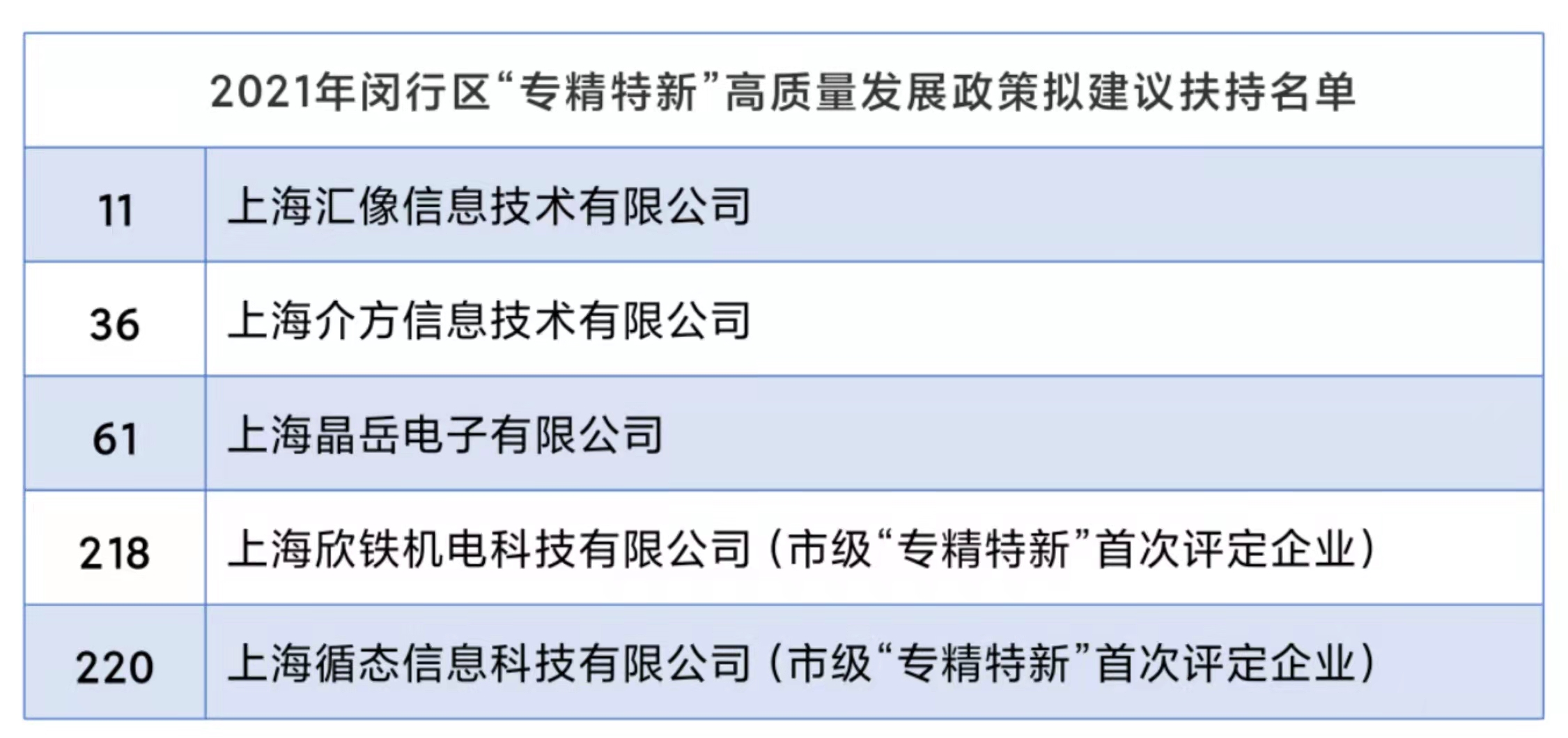 本月,根據(jù)《閔行區(qū)關(guān)于支持“專(zhuān)精特新”中小企業(yè)高質(zhì)量發(fā)展的專(zhuān)項(xiàng)扶持意見(jiàn)》,區(qū)經(jīng)委牽頭組織開(kāi)展了2021年度區(qū)級(jí)“專(zhuān)精特新”中小企業(yè)認(rèn)定以及市級(jí)“專(zhuān)精特新”中小企業(yè)、工信部專(zhuān)精特新“小巨人”企業(yè)、市公共服務(wù)機(jī)構(gòu)、國(guó)家服務(wù)示范平臺(tái)五大類(lèi)項(xiàng)目的資質(zhì)認(rèn)定和扶持資金評(píng)審工作。由紫竹孵化器培育的匯像信息、介方信息、晶岳電子榮獲區(qū)級(jí)“專(zhuān)精特新”企業(yè)稱(chēng)號(hào),欣鐵機(jī)電、循態(tài)信息獲得了市級(jí)“專(zhuān)精特新”首次評(píng)定企業(yè)稱(chēng)號(hào)。
