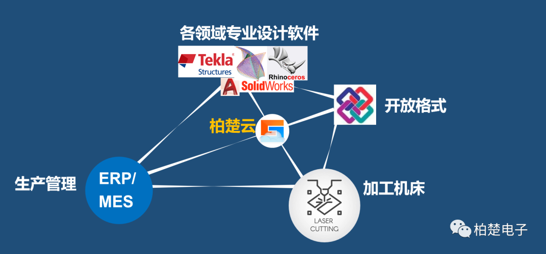 柏楚電子云平臺可以通過云端連接,打通各方,無縫對接專業(yè)設(shè)計軟件 + IFC開放格式 + 生產(chǎn)管理MES + 加工機(jī)床,深耕數(shù)字化和智能化激光加工領(lǐng)域,支持不同客戶的深度定制需求,數(shù)據(jù)采集顆粒度由使用者決定。
