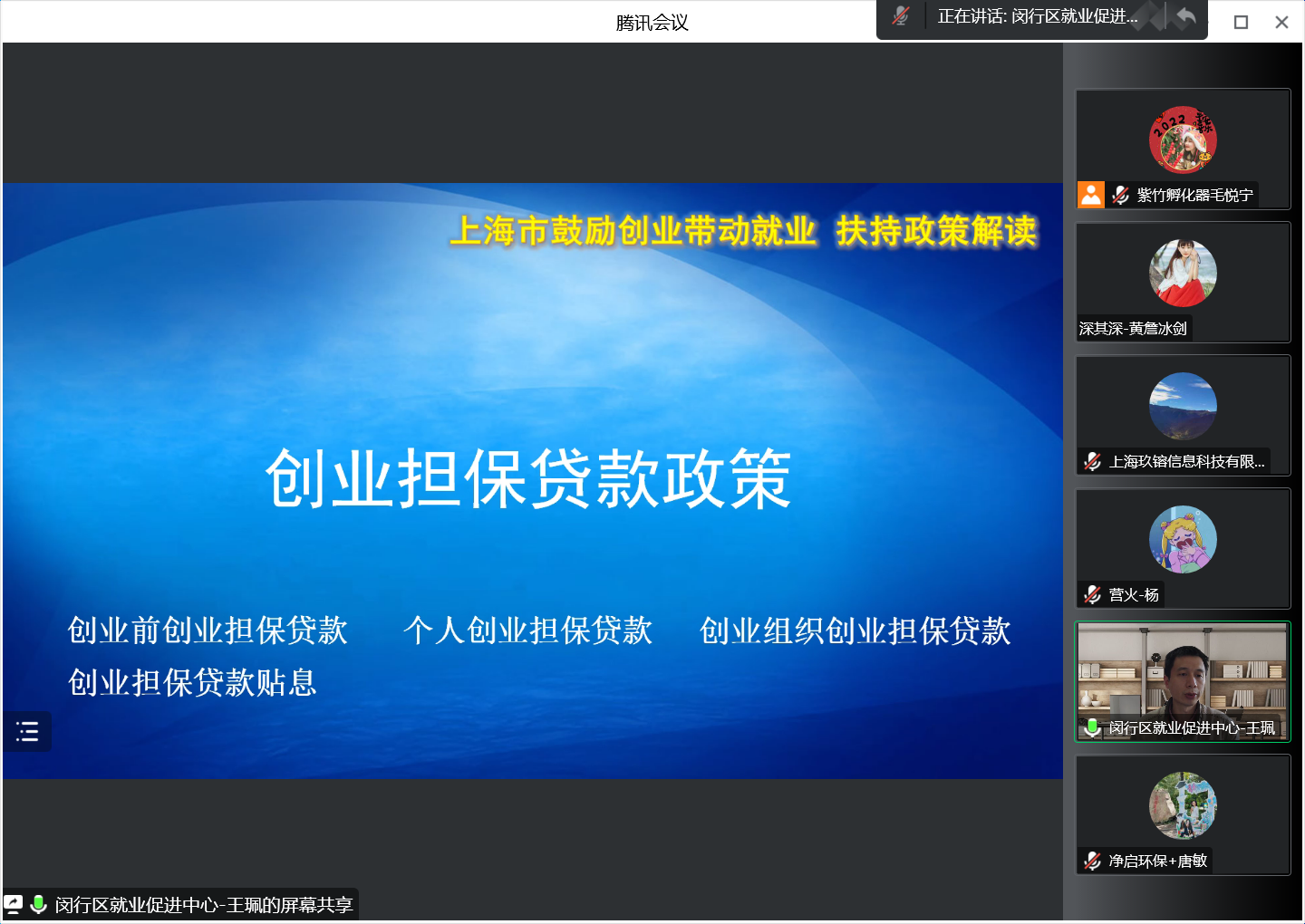 022年10月20日,由閔行區(qū)就業(yè)促進(jìn)中心主辦,紫竹創(chuàng)業(yè)孵化器、閔行區(qū)科技企業(yè)聯(lián)合會(huì)聯(lián)合承辦的“紫竹ET空間政策大講堂之創(chuàng)業(yè)帶動(dòng)就業(yè)政策宣講”舉行。本次宣講以線上講座形式開展,邀請(qǐng)閔行區(qū)就促中心創(chuàng)業(yè)指導(dǎo)科副科長王珮老師進(jìn)行主講,20余家科創(chuàng)企業(yè)代表參會(huì)。