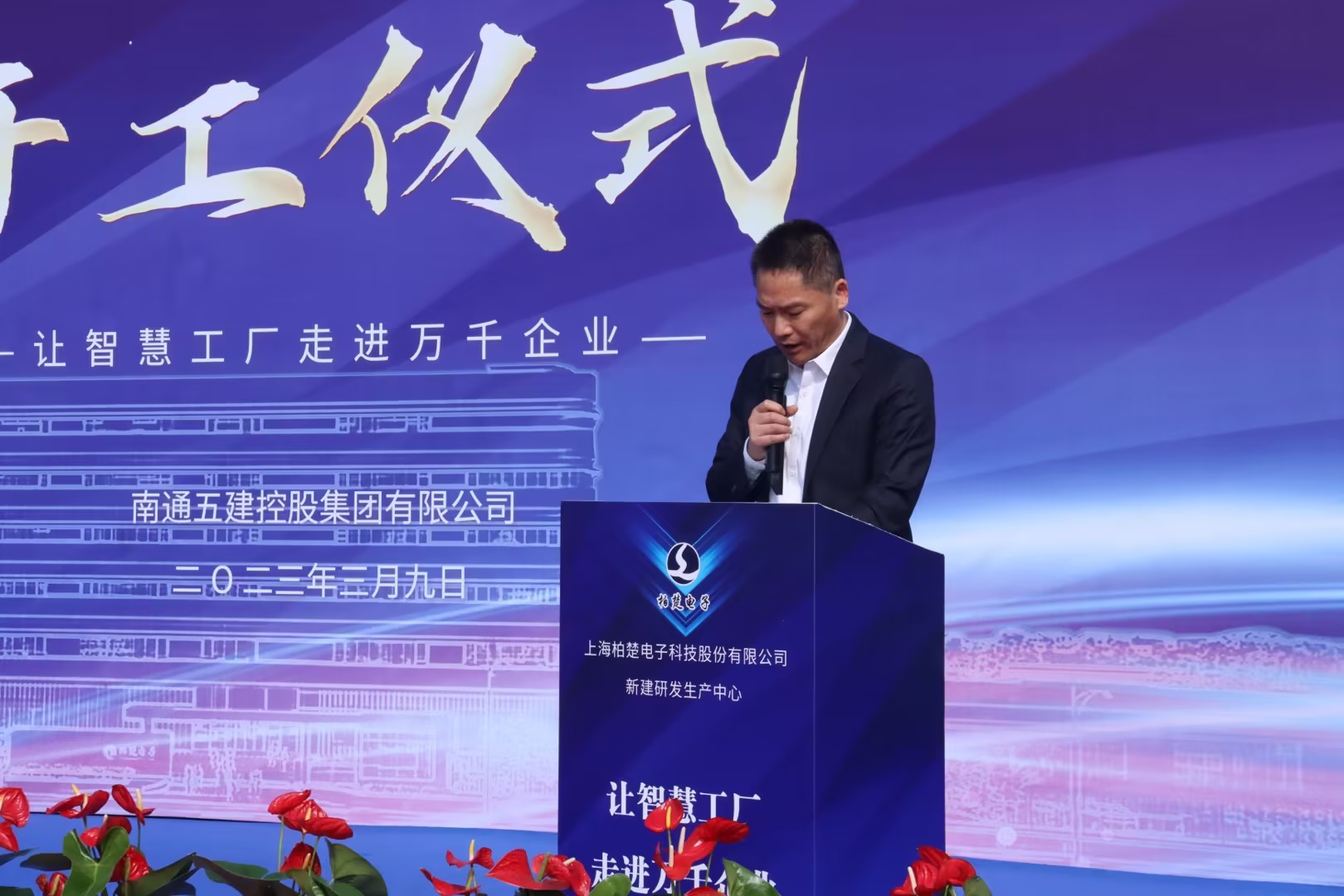 2023年3月9日上午,上海柏楚電子科技股份有限公司新建研發(fā)生產(chǎn)中心項(xiàng)目開(kāi)工奠基儀式隆重舉行。吳涇鎮(zhèn)黨委書(shū)記金海民,黨委副書(shū)記、鎮(zhèn)長(zhǎng)王學(xué)政,副鎮(zhèn)長(zhǎng)李君遐,江川路街道黨工委員、辦事處副主任陸曉燕,紫竹高新區(qū)常務(wù)副總經(jīng)理夏光、招商總監(jiān)任曼、規(guī)劃執(zhí)行總監(jiān)單曉菲,南通五建控股集團(tuán)有限公司上海分公司總經(jīng)理周愛(ài)君,上海華建工程建設(shè)咨詢(xún)有限公司副總經(jīng)理?xiàng)羁〗艿阮I(lǐng)導(dǎo)出席開(kāi)工儀式;柏楚電子董事長(zhǎng)唐曄攜聯(lián)合創(chuàng)始人代田田、盧琳、萬(wàn)章、謝淼和副總經(jīng)理胡佳表示熱烈歡迎,共同培土奠基。