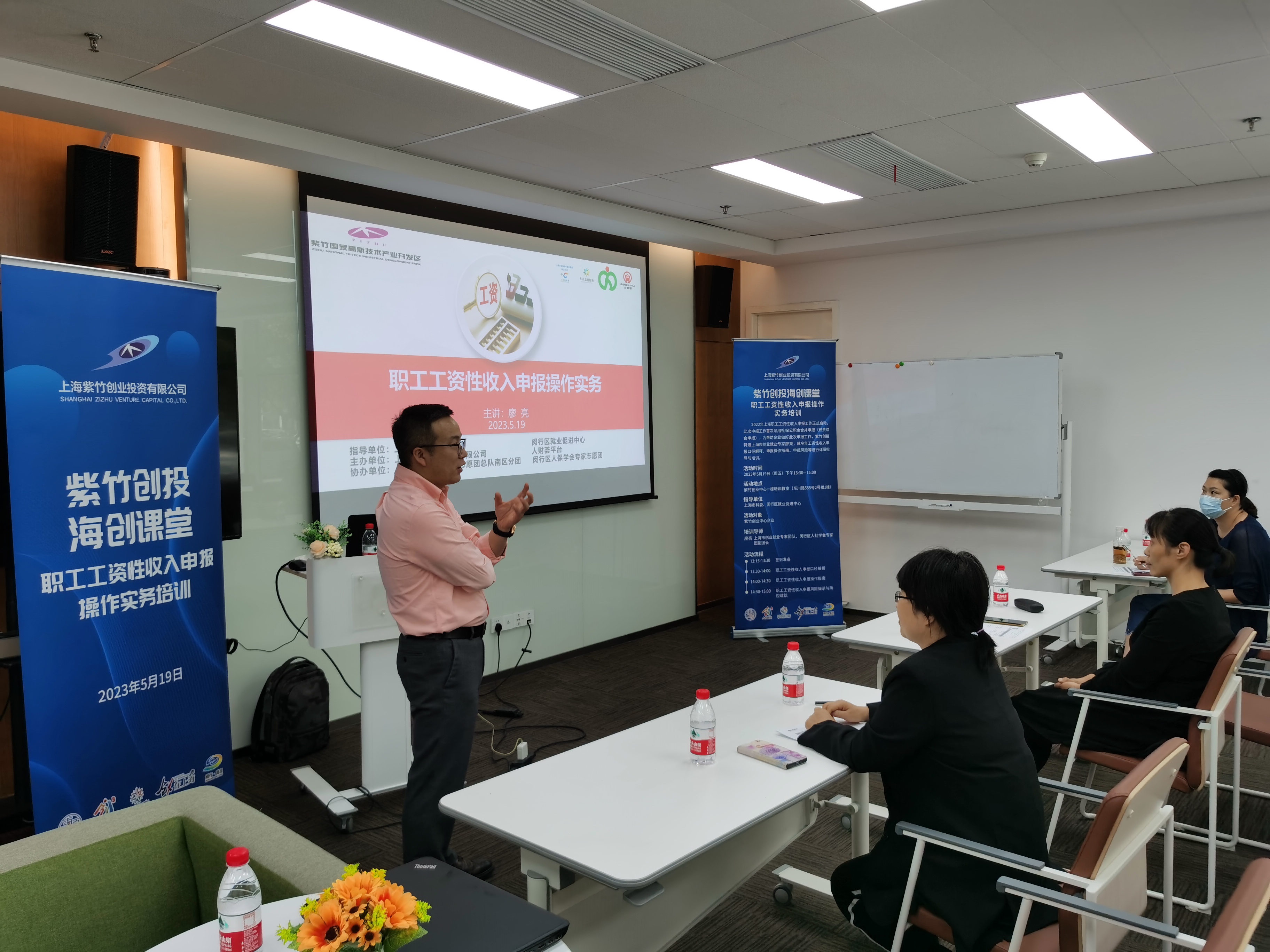 2022年上海職工工資性收入申報(bào)工作正式啟動(dòng),為幫助企業(yè)做好此次新版填報(bào)工作,2023年5月19日下午,由上海市科委、閔行區(qū)科委、閔行區(qū)就業(yè)促進(jìn)中心指導(dǎo),紫竹創(chuàng)投主辦的稅費(fèi)綜合申報(bào)政策下的薪稅管控實(shí)務(wù)培訓(xùn)會(huì)于紫竹創(chuàng)業(yè)中心舉行,活動(dòng)特邀上海市創(chuàng)業(yè)就業(yè)專家廖亮,就今年工資性收入申報(bào)口徑解釋、申報(bào)操作指南、申報(bào)風(fēng)險(xiǎn)等進(jìn)行詳細(xì)指導(dǎo)與培訓(xùn),近30家紫竹創(chuàng)投在孵科創(chuàng)企業(yè)參與此次線下培訓(xùn)并與專家進(jìn)行了進(jìn)一步交流。