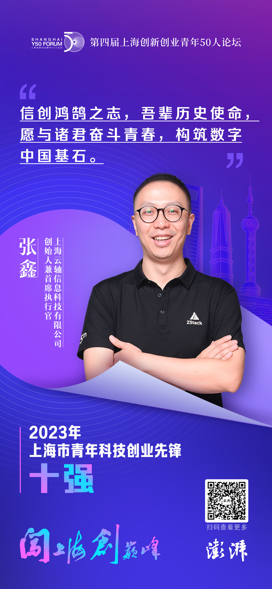 2023年5月20日,第四屆上海創(chuàng)新創(chuàng)業(yè)青年50人論壇在上海中心召開,論壇上首次發(fā)布了“2023年上海市青年科技創(chuàng)業(yè)先鋒(U45創(chuàng)先鋒)十強(qiáng)”名單,云軸科技ZStack 創(chuàng)始人&CEO張?chǎng)稳脒x。