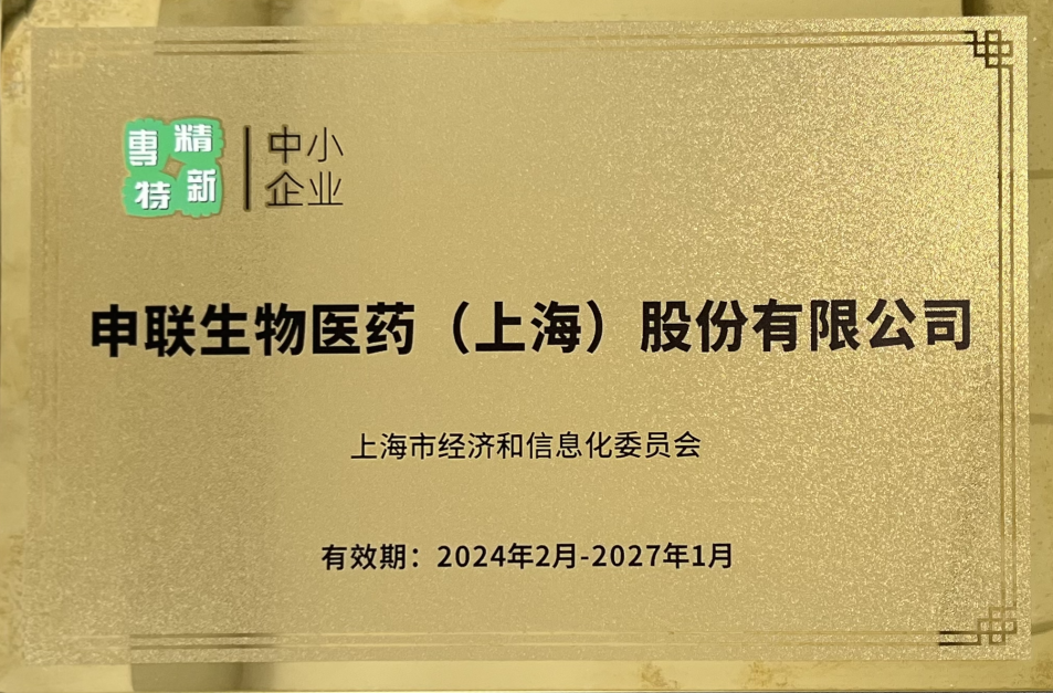 近日,申聯(lián)生物獲得由上海市經(jīng)濟(jì)和信息化委員會頒發(fā)的“上海市專精特新中小企業(yè)”銘牌。這是公司繼2018年首次通過該項認(rèn)定后,順利通過復(fù)核再度獲得此項榮譽(yù)。