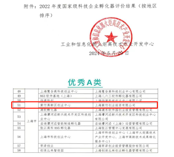 近日,工信部火炬中心發(fā)布了《關(guān)于公布2022年度國(guó)家級(jí)科技企業(yè)孵化器評(píng)價(jià)結(jié)果的通知》,上海紫竹創(chuàng)業(yè)投資有限公司(孵化基地名稱:上海紫竹高新區(qū)創(chuàng)業(yè)中心)榮獲年度評(píng)價(jià)考核A類等第,這也是紫竹創(chuàng)投第二次榮獲火炬中心孵化器年度評(píng)價(jià)A類等第,本次評(píng)價(jià)全國(guó)國(guó)家級(jí)孵化器A類等第比例為20%,上海市全市共有12家國(guó)家級(jí)孵化器獲評(píng)A類,紫竹創(chuàng)投評(píng)價(jià)綜合成績(jī)位于上海市前列。