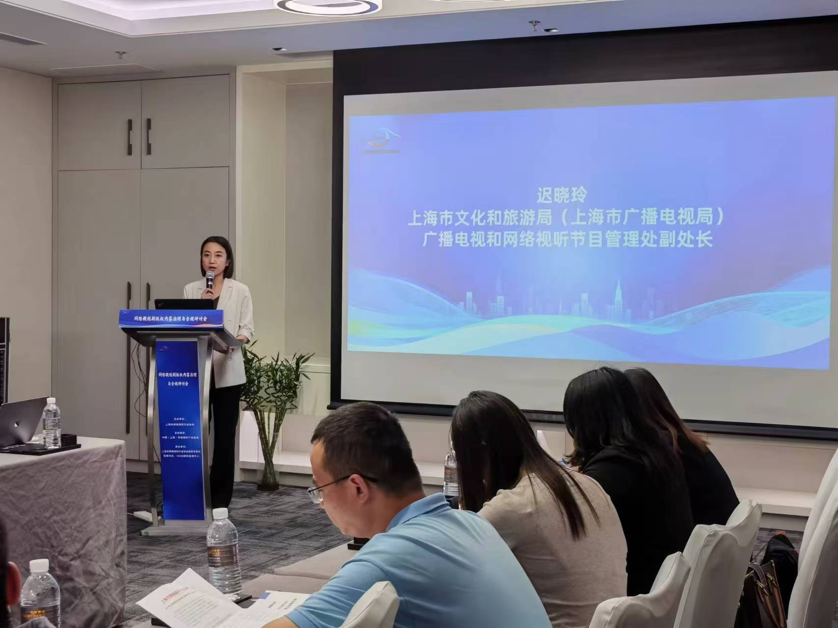 2024年9月27日,由上海市網(wǎng)絡(luò)視聽行業(yè)協(xié)會主辦,冠勇科技承辦的“上海網(wǎng)絡(luò)微短劇版權(quán)內(nèi)容治理與合規(guī)研討會”在中國(上海)網(wǎng)絡(luò)視聽產(chǎn)業(yè)基地舉辦。上海市廣播電視局網(wǎng)絡(luò)視聽節(jié)目管理處副處長遲曉玲、上海市網(wǎng)絡(luò)視聽行業(yè)協(xié)會會長徐輝、中國(上海)網(wǎng)絡(luò)視聽產(chǎn)業(yè)基地管理辦公室主任陳鼎等出席會議。研討會上,來自行業(yè)監(jiān)管部門、法律專家、行業(yè)協(xié)會、版權(quán)方和版權(quán)保護機構(gòu)等多方代表發(fā)表了主題演講,共同探討網(wǎng)絡(luò)微短劇在版權(quán)內(nèi)容治理與行業(yè)合規(guī)方面的熱點問題和未來發(fā)展趨勢。