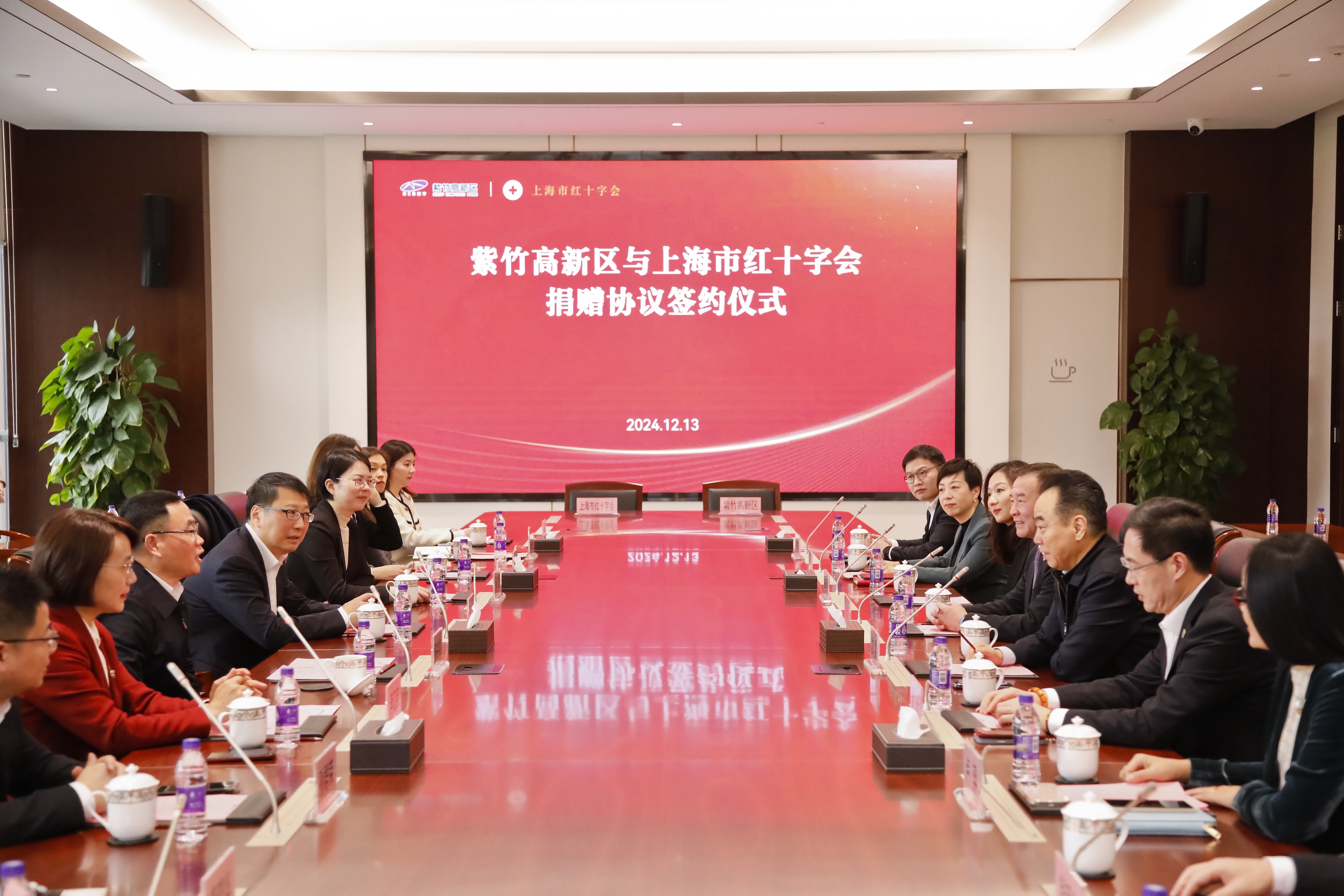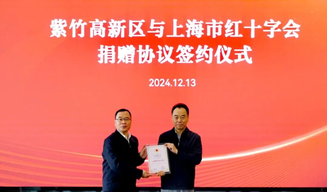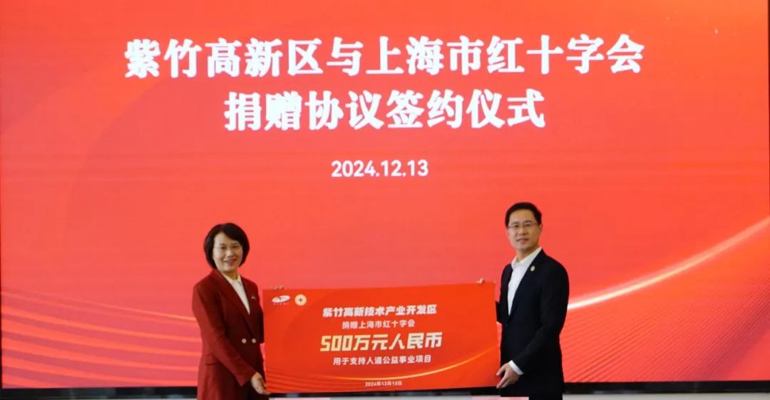 2024年12月13日下午,紫竹高新區(qū)與上海市紅十字會捐贈簽約儀式在紫竹高新技術(shù)產(chǎn)業(yè)開發(fā)區(qū)舉行。紫竹高新區(qū)捐贈500萬元主要用于“守護(hù)生命·助力成長”紅十字青少年生命教育、“生命接力·愛心相髓”紅十字造血干細(xì)胞捐獻(xiàn)、“關(guān)愛生命·救在身邊”紅十字應(yīng)急救護(hù)等三大方面的人道公益事業(yè)。