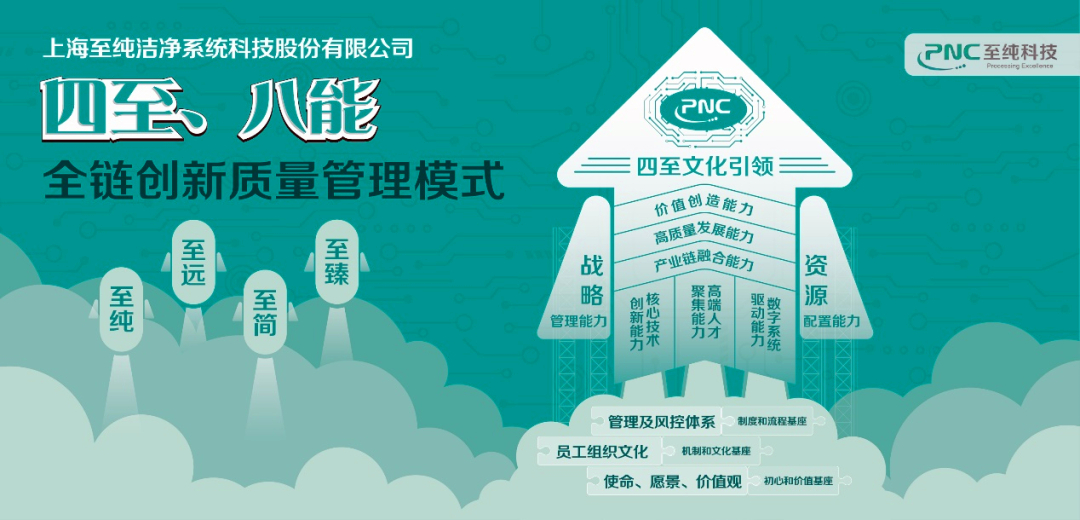 上海至純潔凈系統(tǒng)科技股份有限公司成立于2000年,是一家民營高科技上市企業(yè)(證券代碼:603690)。公司專注于集成電路、生物和新能源三大國家戰(zhàn)略新興領(lǐng)域的關(guān)鍵工藝和裝備技術(shù)研發(fā)突破和產(chǎn)業(yè)鏈發(fā)展。作為公司的領(lǐng)頭羊和帶頭人,蔣淵女士始終堅持“質(zhì)量是企業(yè)的生命”,親自擔(dān)任企業(yè)首席質(zhì)量官,推行具有至純特色的“四至八能全鏈創(chuàng)新質(zhì)量管理模式”, 該模式以“至純、至遠(yuǎn)、至簡、至臻”四至文化為引領(lǐng), 以“戰(zhàn)略管理能力、資源配置能力”為兩翼,“價值創(chuàng)造能力、高質(zhì)量發(fā)展能力、產(chǎn)業(yè)鏈融合能力”為核心,“核心技術(shù)創(chuàng)新能力、高端人才聚集能力、數(shù)字系統(tǒng)驅(qū)動能力”為支撐的八項(xiàng)能力提升,依托“管理及風(fēng)控體系”“員工組織文化”“使命、愿景、價值觀”三個基座保障,追求關(guān)鍵工藝的產(chǎn)業(yè)鏈價值創(chuàng)造。