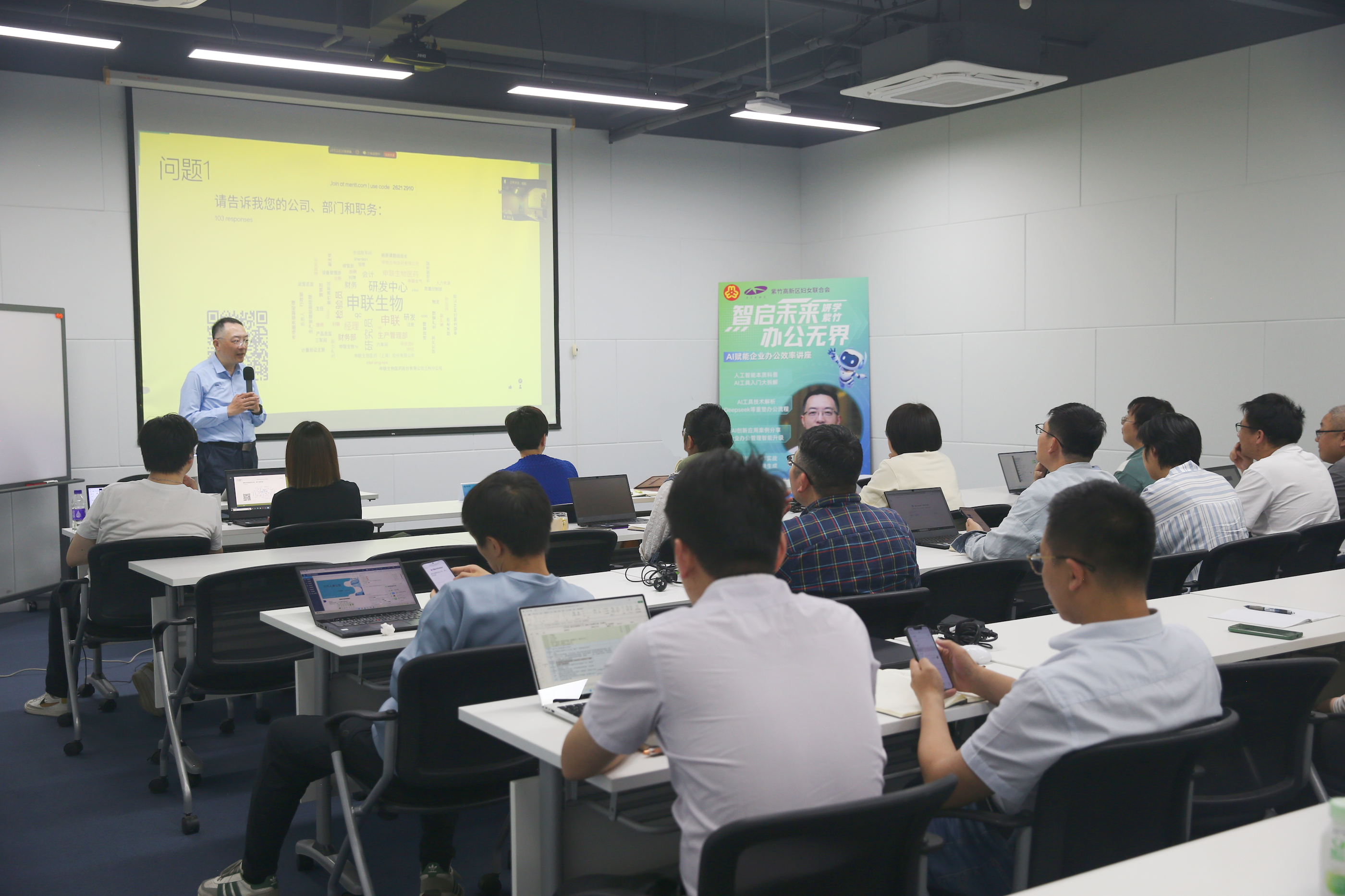 講座聚焦AI在現(xiàn)代辦公中的深度應(yīng)用,系統(tǒng)展示了計算機視覺、自然語言處理、數(shù)據(jù)分析預(yù)測及機器人流程自動化(RPA)等前沿技術(shù)如何高效解決實際痛點;帶領(lǐng)大家通過“文案智能生成”“海報自動化設(shè)計”“音頻AI創(chuàng)作”等場景操作,直觀感受到技術(shù)對傳統(tǒng)工作模式的顛覆性變革,現(xiàn)場反響熱烈。朗朗老師特別指出,AI的價值不僅在于效率提升,更在于推動職場角色轉(zhuǎn)型,大家需從“被動適應(yīng)者”轉(zhuǎn)變?yōu)椤爸鲃釉O(shè)計者”,將AI轉(zhuǎn)化為個人可持續(xù)的競爭優(yōu)勢?;顒舆€設(shè)置交流環(huán)節(jié),來自高新區(qū)內(nèi)數(shù)字科技、生物醫(yī)藥、智能制造等領(lǐng)域的代表圍繞“AI技術(shù)落地瓶頸”展開討論;針對數(shù)據(jù)安全、成本控制等焦點問題,朗朗老師推薦了私域平臺搭建與模塊化處理方案,并分享“分步實施、小步快跑”的實踐策略,為技術(shù)者與管理者提供了可操作的解決路徑。參與者們紛紛贊嘆此次AI講座既有戰(zhàn)略高度,又具實操價值,為企業(yè)團(tuán)隊轉(zhuǎn)型提供了清晰路徑。