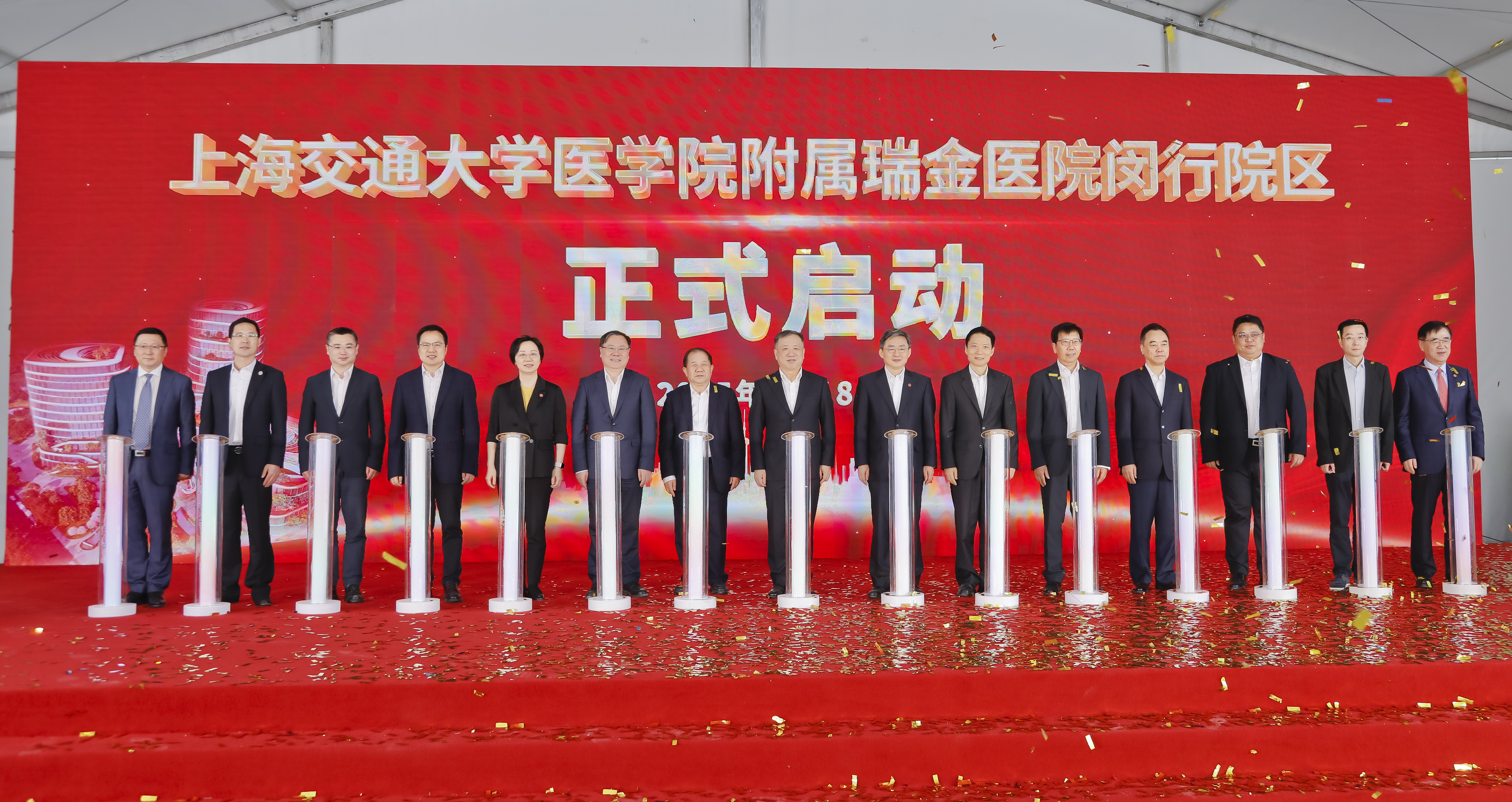 楊振斌、丁奎嶺、林忠欽、陸方舟、吳強、錢旭紅、江帆、沈雯、可曉林、李陽、趙昕、寧光、胡偉國、吳宏、夏光共同為瑞金醫(yī)院閔行院區(qū)按下啟動鍵