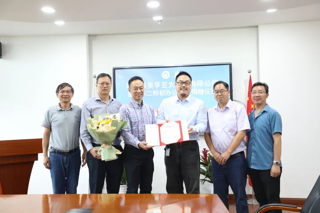 捐贈儀式在華二附初舉行,華二附初副校長汪麗萍主持儀式。汪校長對??松梨趤喬邪l(fā)有限公司嘉賓的到來表示熱烈歡迎,并介紹了本次捐贈活動的重要意義。
