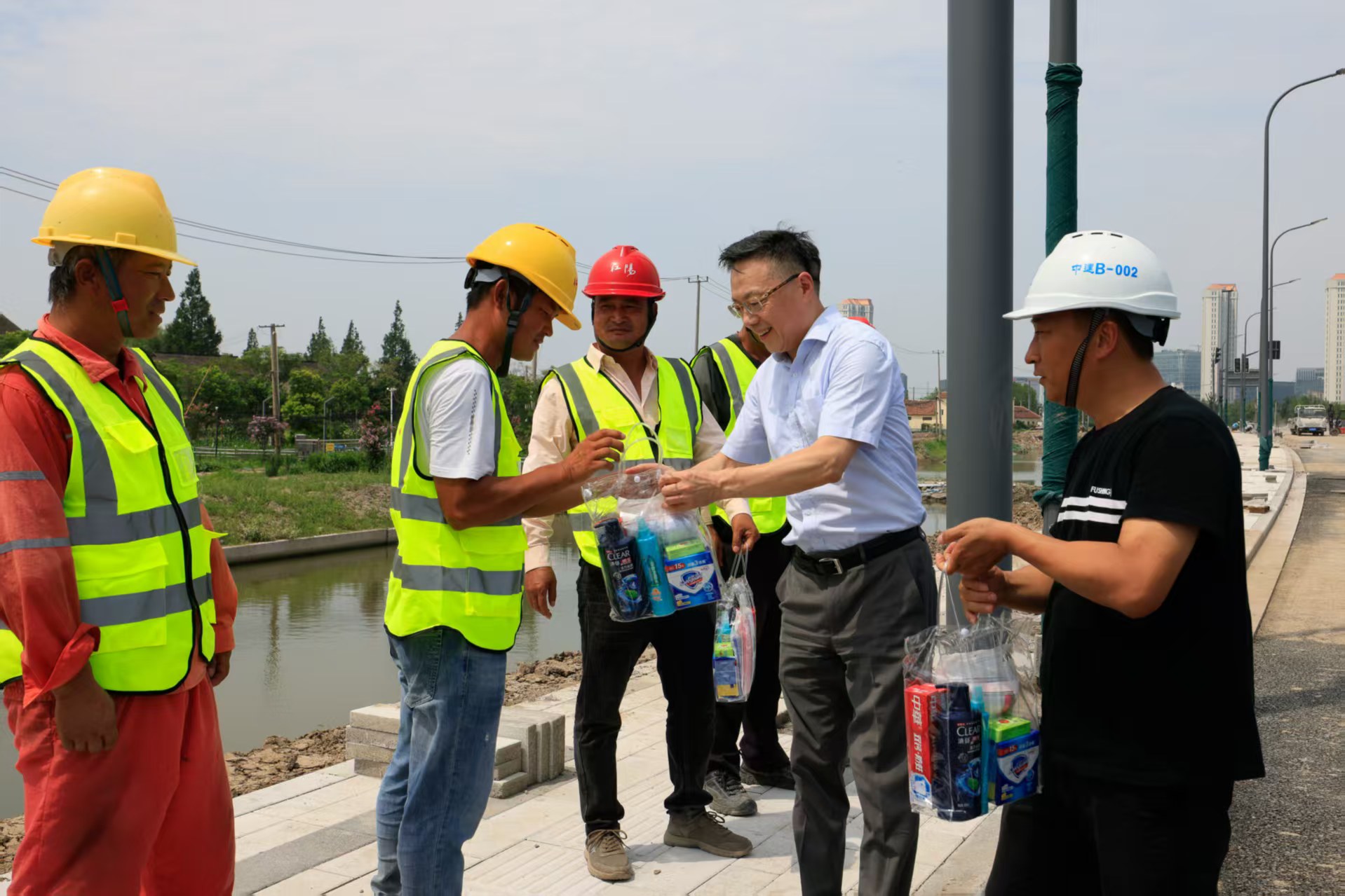在慰問現(xiàn)場,陸總向奮戰(zhàn)在高溫一線的工人們表達了由衷的關心和感謝。他指出:“一線工人是各項目建設的堅實力量,是工程質量和進度的重要保障?!彼貏e強調,各項目務必高度重視夏季高溫作業(yè)安全,必須將防暑降溫措施落實到位,科學安排作息時間,全力保障每一位工人的身體健康和人身安全,確保工人們以良好的狀態(tài)投入工作。