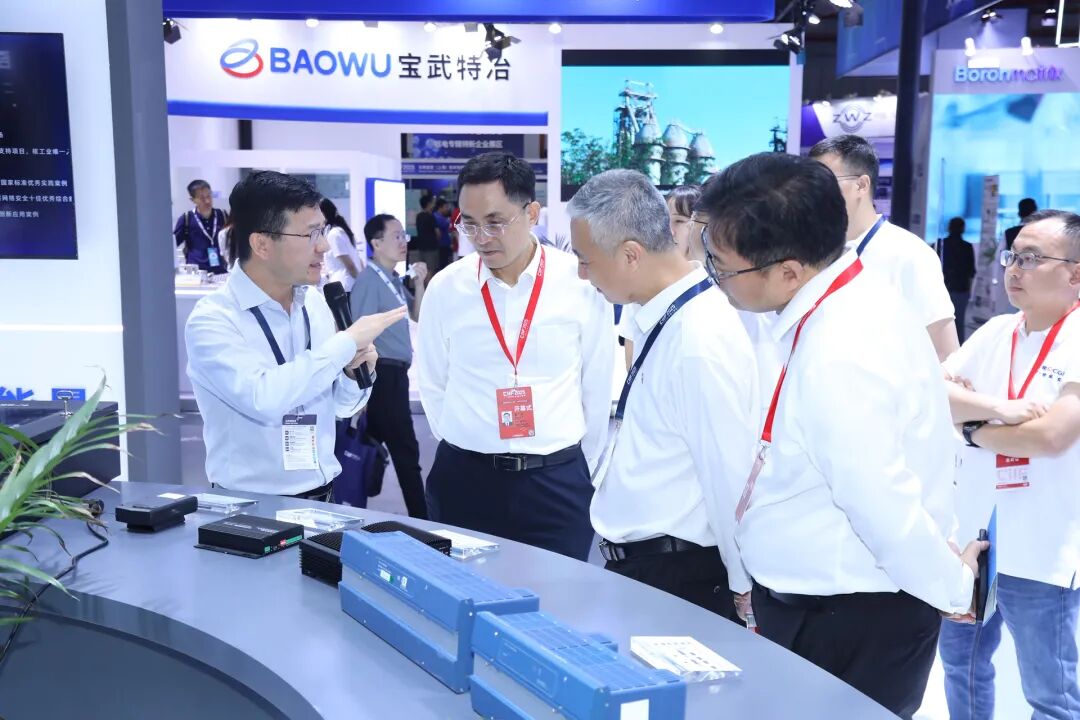 在新能源自動化展區(qū),工程師為現(xiàn)場嘉賓介紹自主研發(fā)的風機控制器“和睦長風”,是目前國內(nèi)唯一同時取得海上、陸上大功率機組雙應用的產(chǎn)品,具備高性能、高可靠、智能化、易維護的技術優(yōu)勢。自主研發(fā)的塔式太陽能鏡場控制系統(tǒng),專為大規(guī)模塔式聚光太陽能電站設計,能夠?qū)崿F(xiàn)高精度控制,保障鏡場高效穩(wěn)定運行。